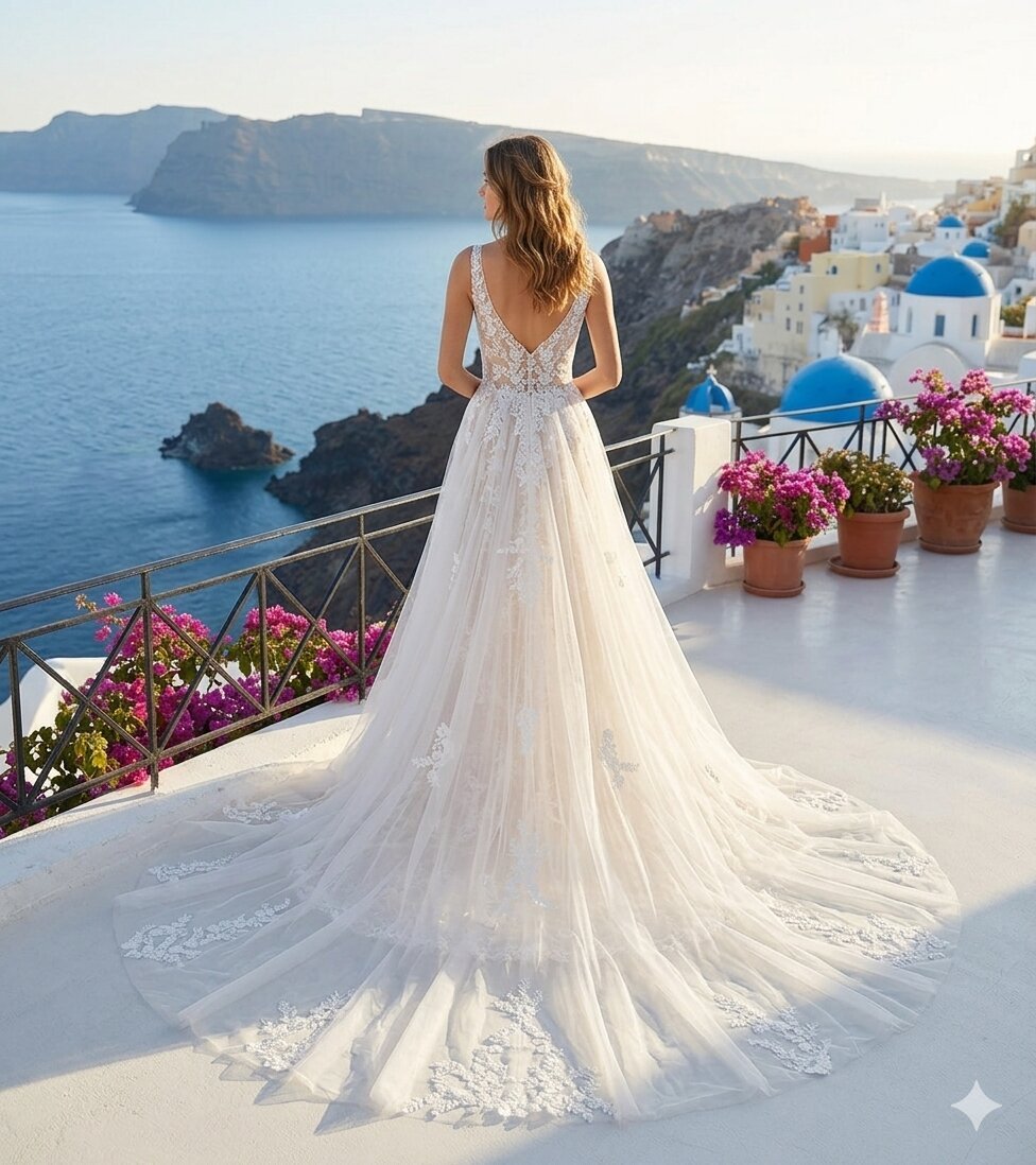 Embrace destination perfection and an unforgettable ceremony moment with the Harmony. This breathtaking gown features a delicate, plunging V-neckline with illusion detailing and intricate floral lace appliqués that blossom across the bodice and trail effortlessly down onto a billowing, voluminous tulle overskirt. With its grand, sweeping train, the Harmony is a true vision of ethereal beauty, guaranteed to leave your guests in awe as you glide down the aisle.