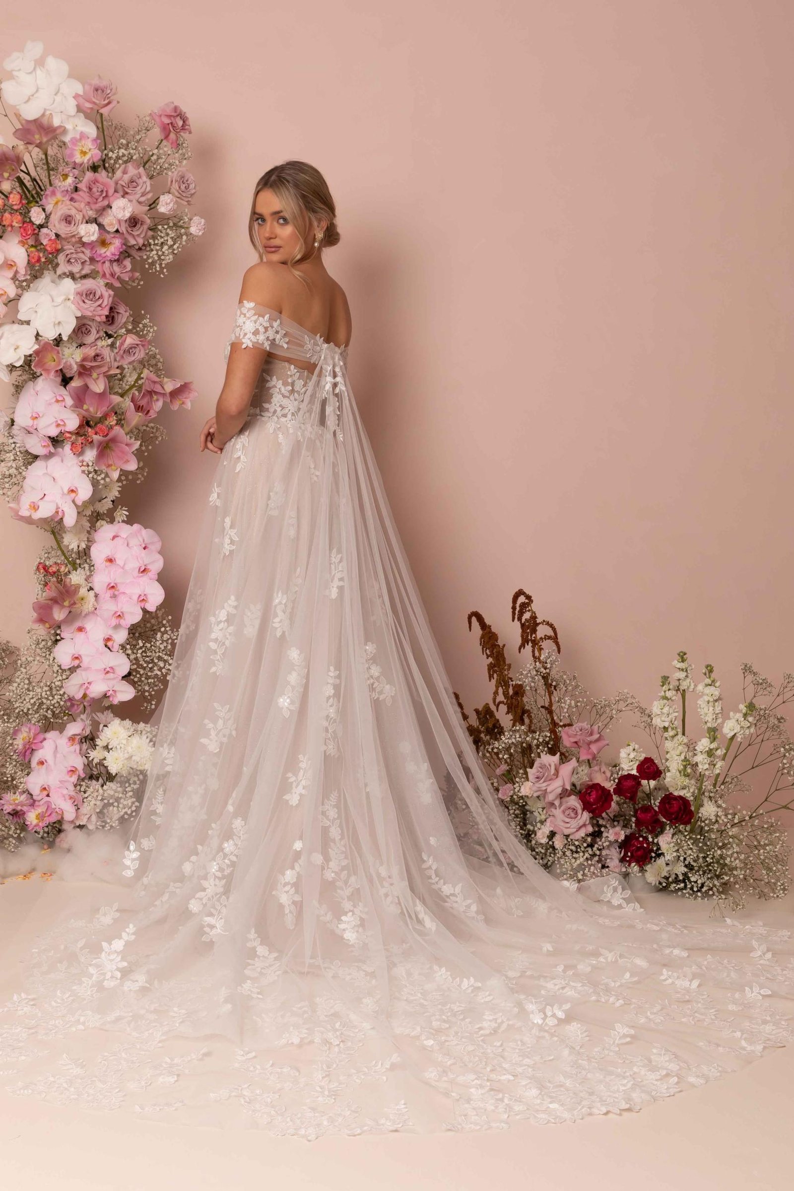 ML1031 is wildly feminine and effortlessly romantic with her eyes focused on the end of the aisle and her fairy-tale ending.