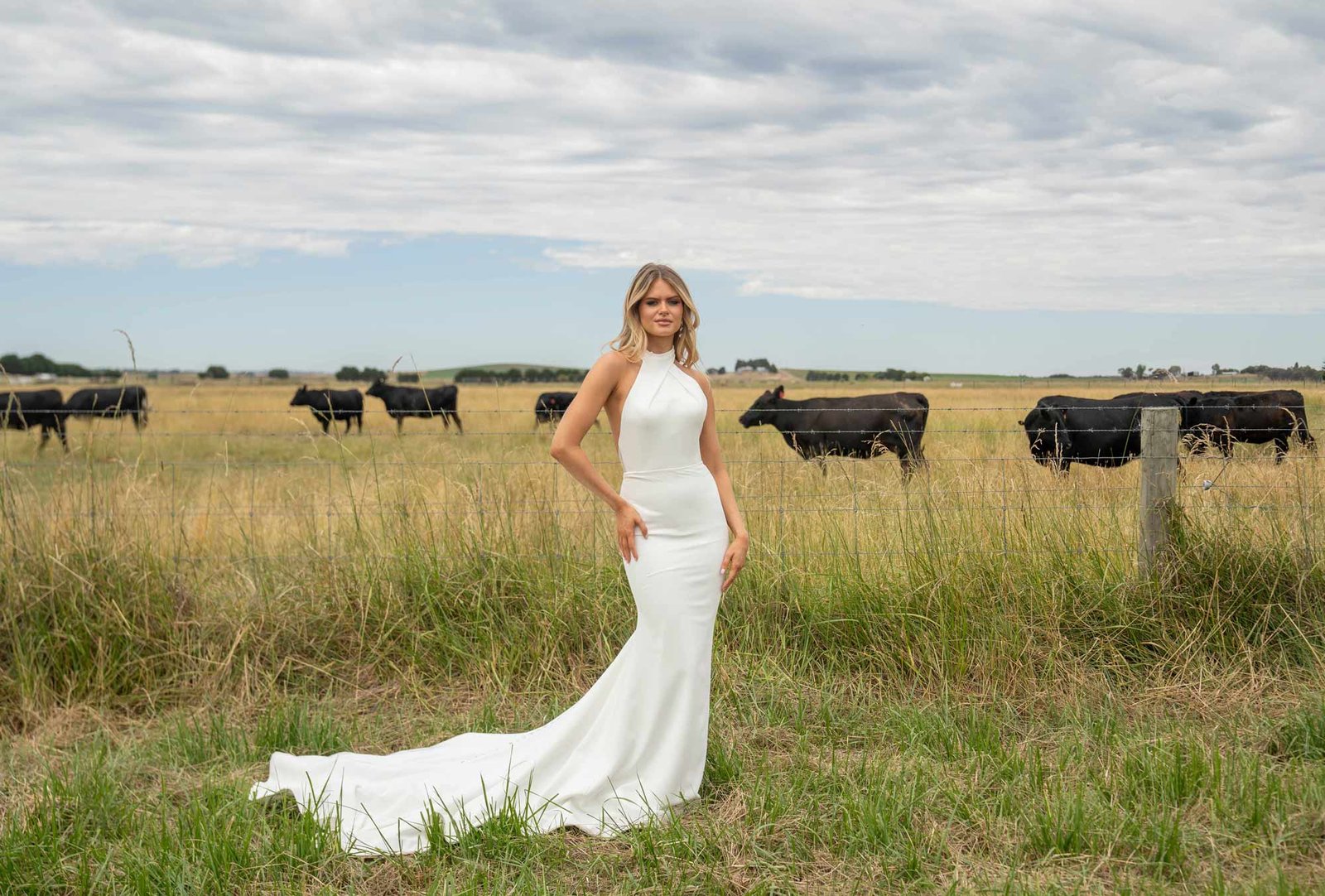 ML1066 is a simply elegant wedding dress, designed in light crepe for a fashion forward bride who prefers a minimalist look.